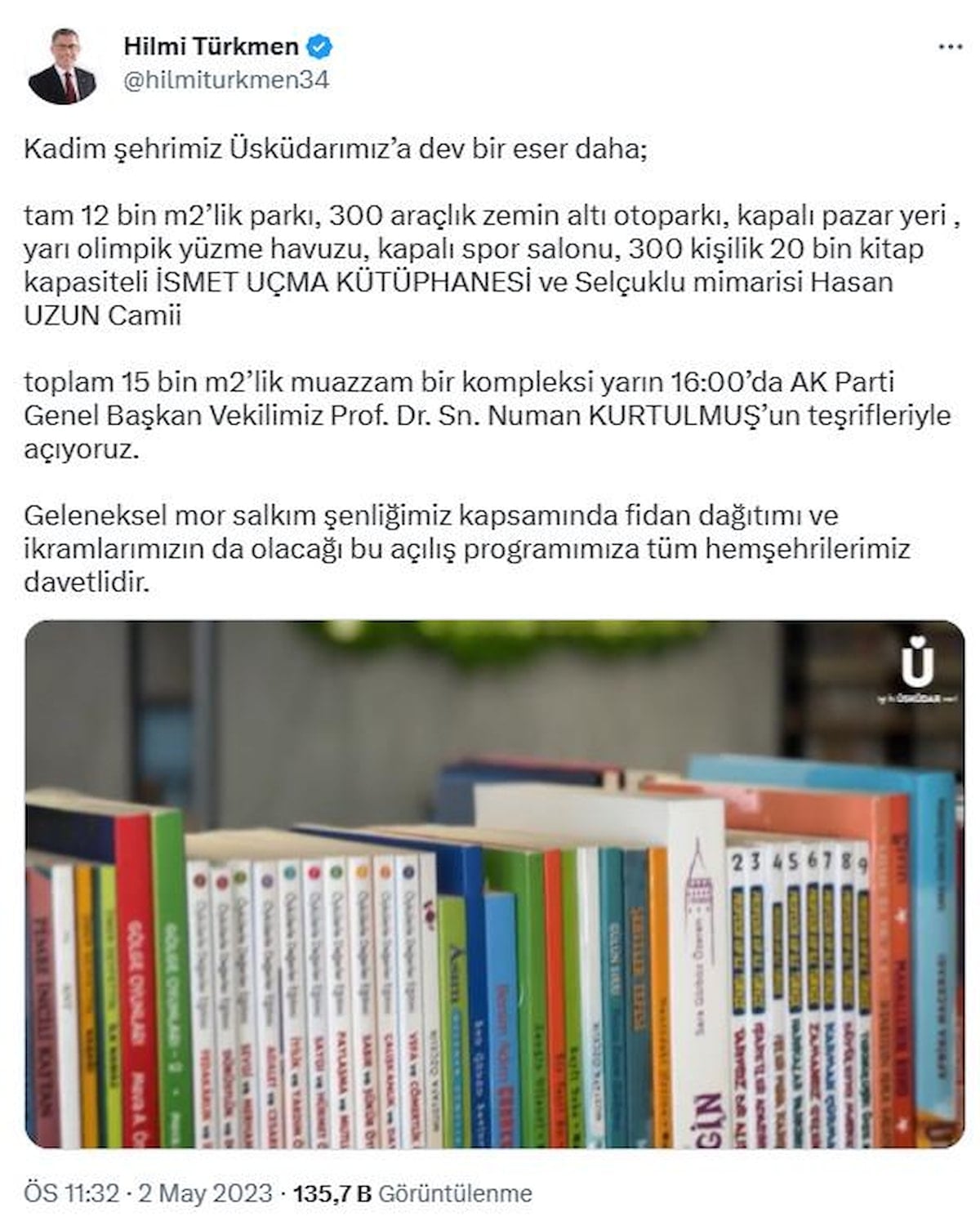 Üsküdar Belediye Başkanı Hilmi Türkmen, sosyal medya hesabından paylaştığı video ile kompleks hakkında bilgi verdi.